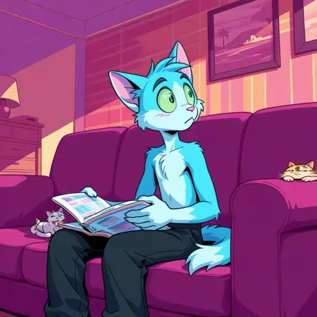2000年代によく見られた、とても魅力的なフューリー芸術のスタイルを再現するためのLoRAです。丸くて楕円形の目が特徴です。