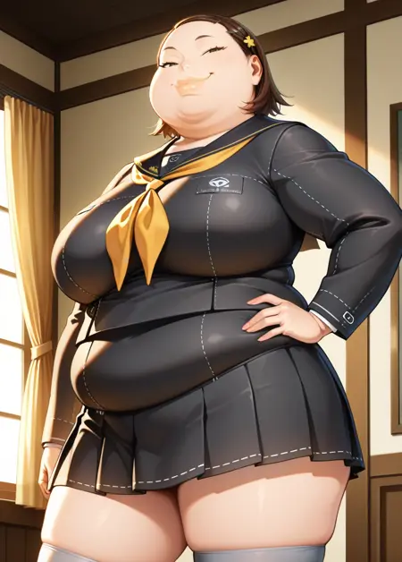 《女神异闻录4》中的大神花子模型。如果你使用“官方艺术图”,将能更清晰地看到她在游戏中的肖像。