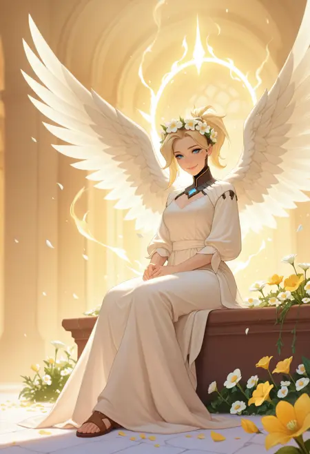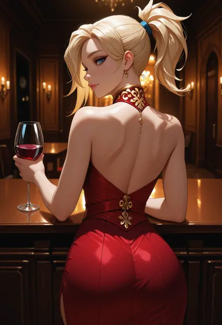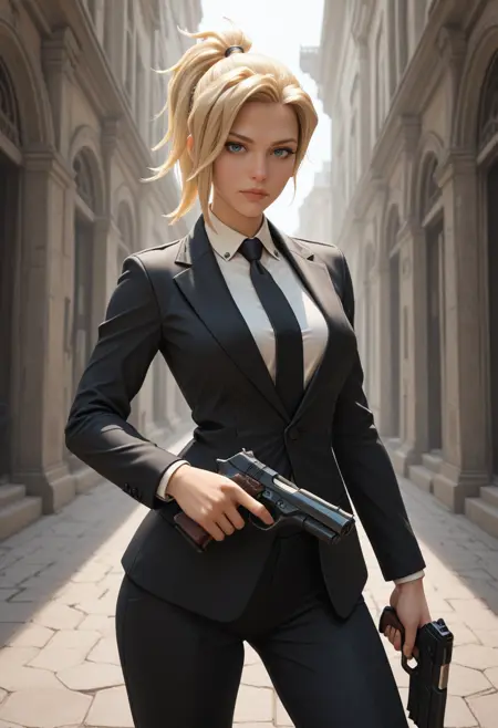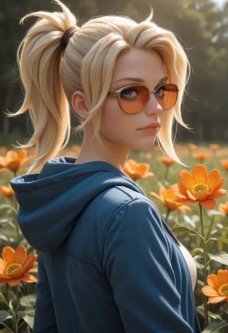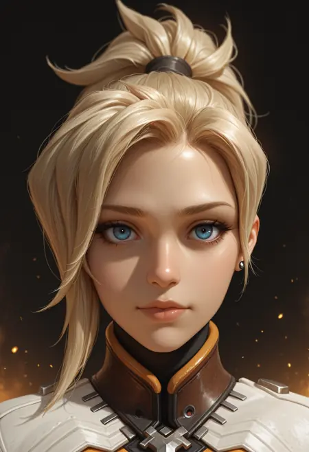 OMercy, 1girl, blonde hair, ponytail, blue eyes