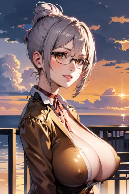 メインのトリガー語は shiraki meiko で、常に hair bun, glasses を併用してください。
