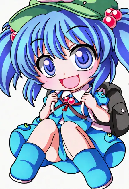 shinjitsu_chibi に、キャラクターの外見(例:青い髪、白いドレス、猫の耳)、行動(立っている、座っている)、感情(笑っている、恥ずかしがっている)を記述するタグと組み合わせてください。