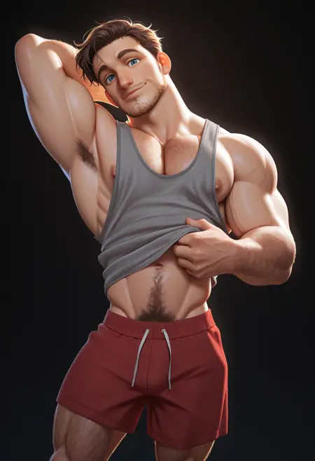 chest hair,arm hair,leg hair,hairy,beard와 같은 태그는 스타일을 유도하는 데 도움이 되며, 남성들의 근육질 특성을 더욱 강조하는 경향이 있습니다.남성을 생성하려면