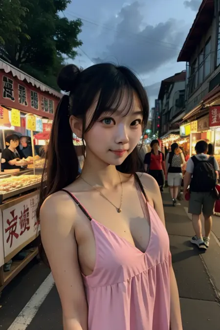 注:女の子の顔の角度はほぼ右を向いています。顔の角度を調整したい場合は、重みを減らしてください。