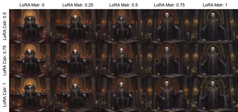 이 모델은 판타지 카드 아트 생성을 위한 "흡혈귀"라는 개념을 세밀하게 조정했습니다.