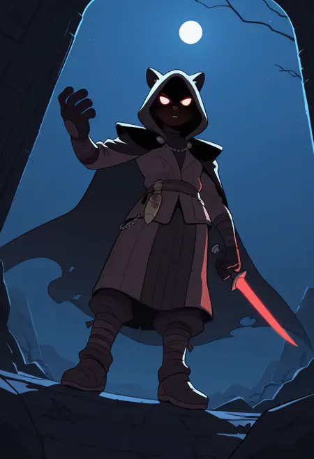 서양 만화 스타일과 애니메이션의 융합. 정확한 만화 스타일을 구현하려면 선택적 태그 '평면 색상, 평면 셰이딩'을 추천하지만, 더 복잡한 조명 효과를 원한다면 이 태그를 생략할 수 있음.