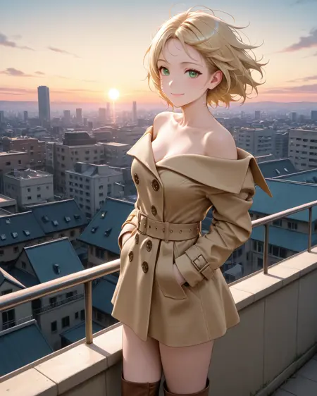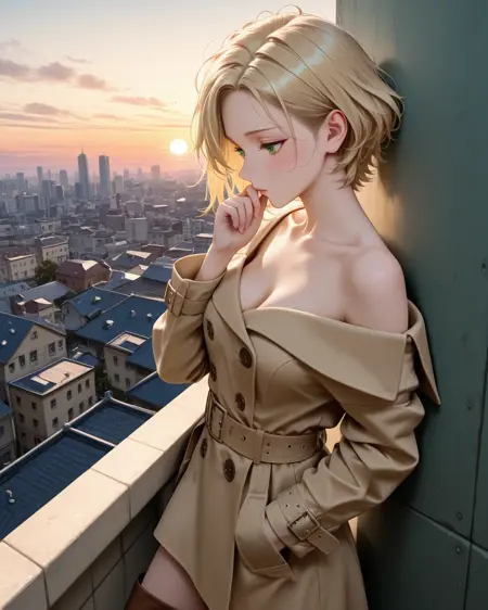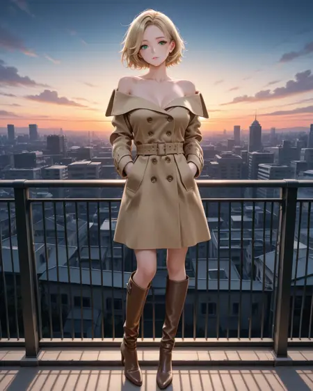 • Cannot generate images where the trench coat is unbuttoned or open in front.