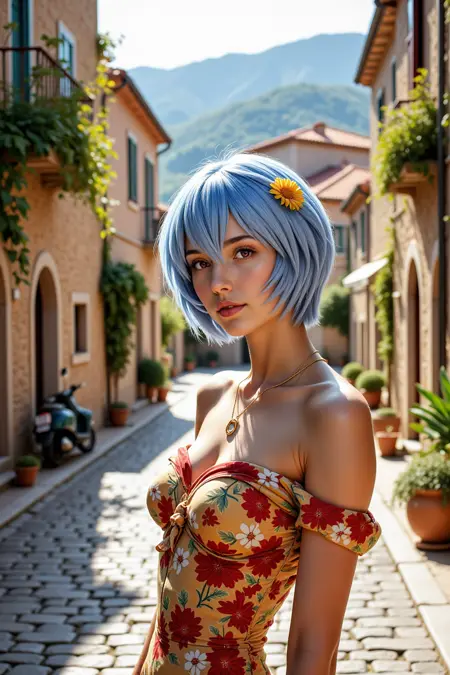 经典风格提示包括:浅蓝色头发、短鲍伯头、白色Plug Suit、头部接口等。