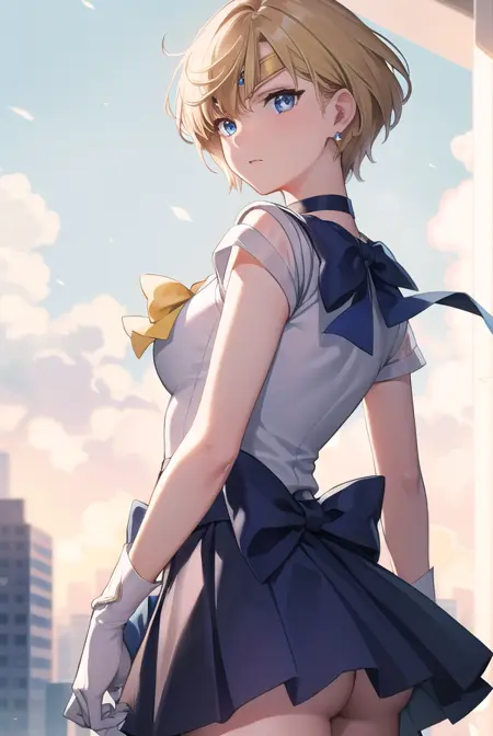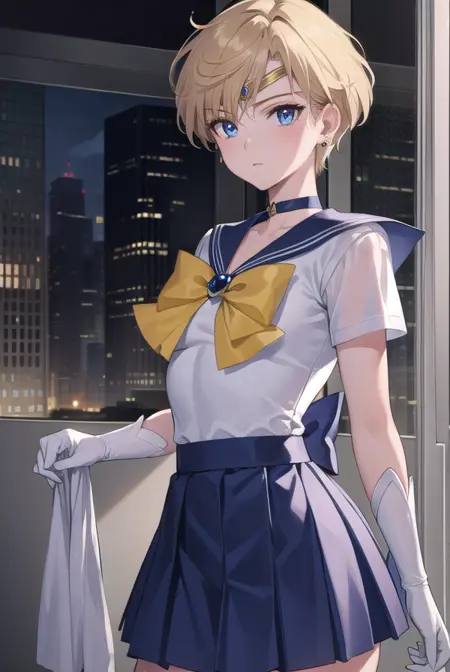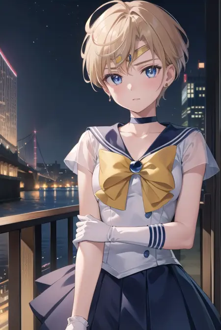 水手天王星,金发,蓝眼睛,(分叉刘海:1.5),短发,非常短的头发,