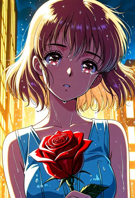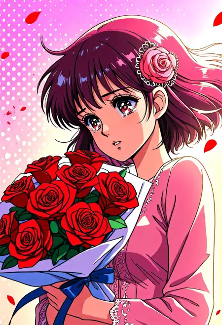 我们的模型捕捉了定义那个时代的大而闪亮的眼睛、飘逸的长发、柔和的腮红和戏剧性的花卉背景,并配有复古网点纹理和充满情感、夸张的表达,堪比任何复古漫画女主角。