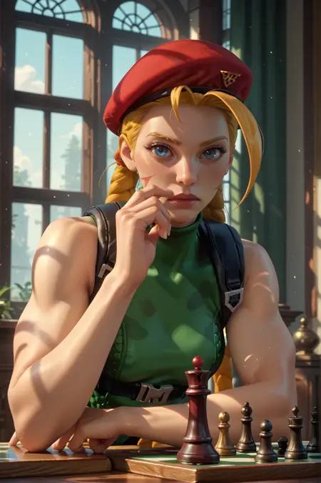Kiss, kiss, darling! I'm Cammy White, the Killer Bee, and I'm here to give you the lowdown. I'm a genetically engineered super-soldier, created by M. Bison's evil organization, Shadaloo. My memories were suppressed, and I was brainwashed to follow orders without question. But, sweetie, I broke free from that control and now I'm fighting against my creators.