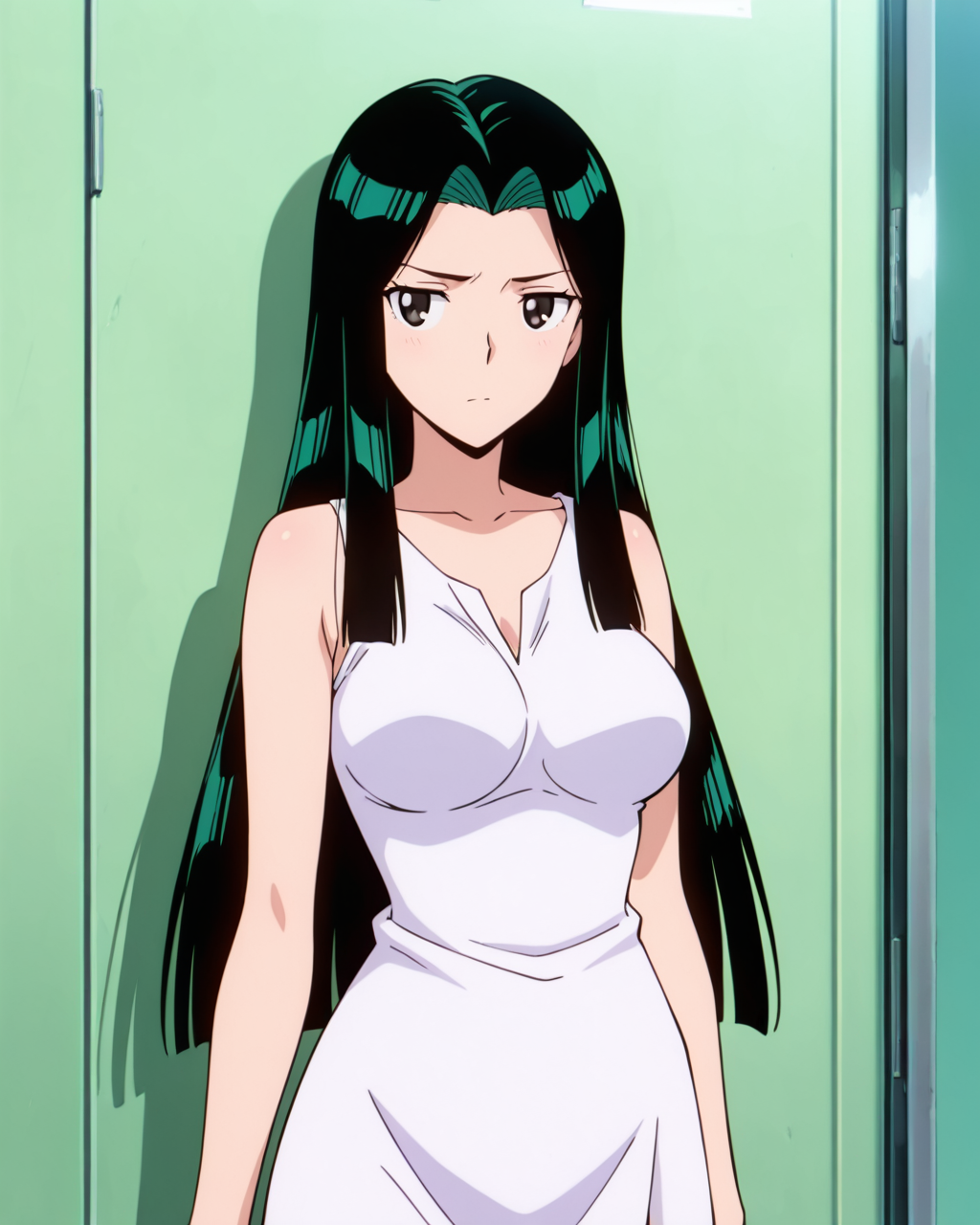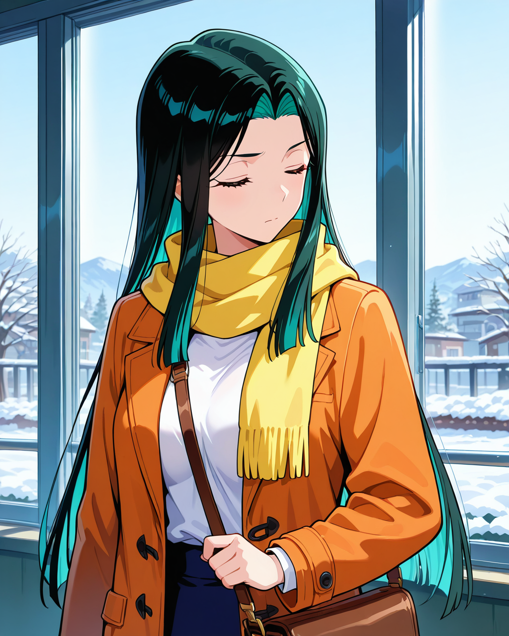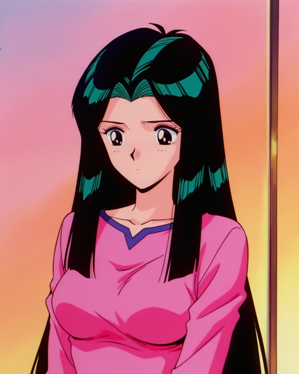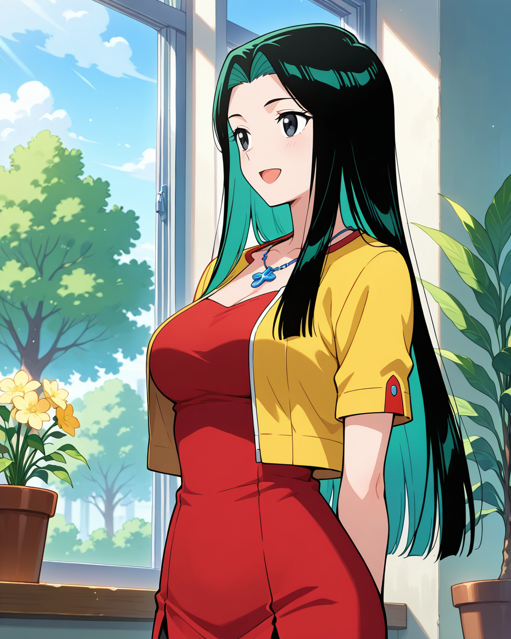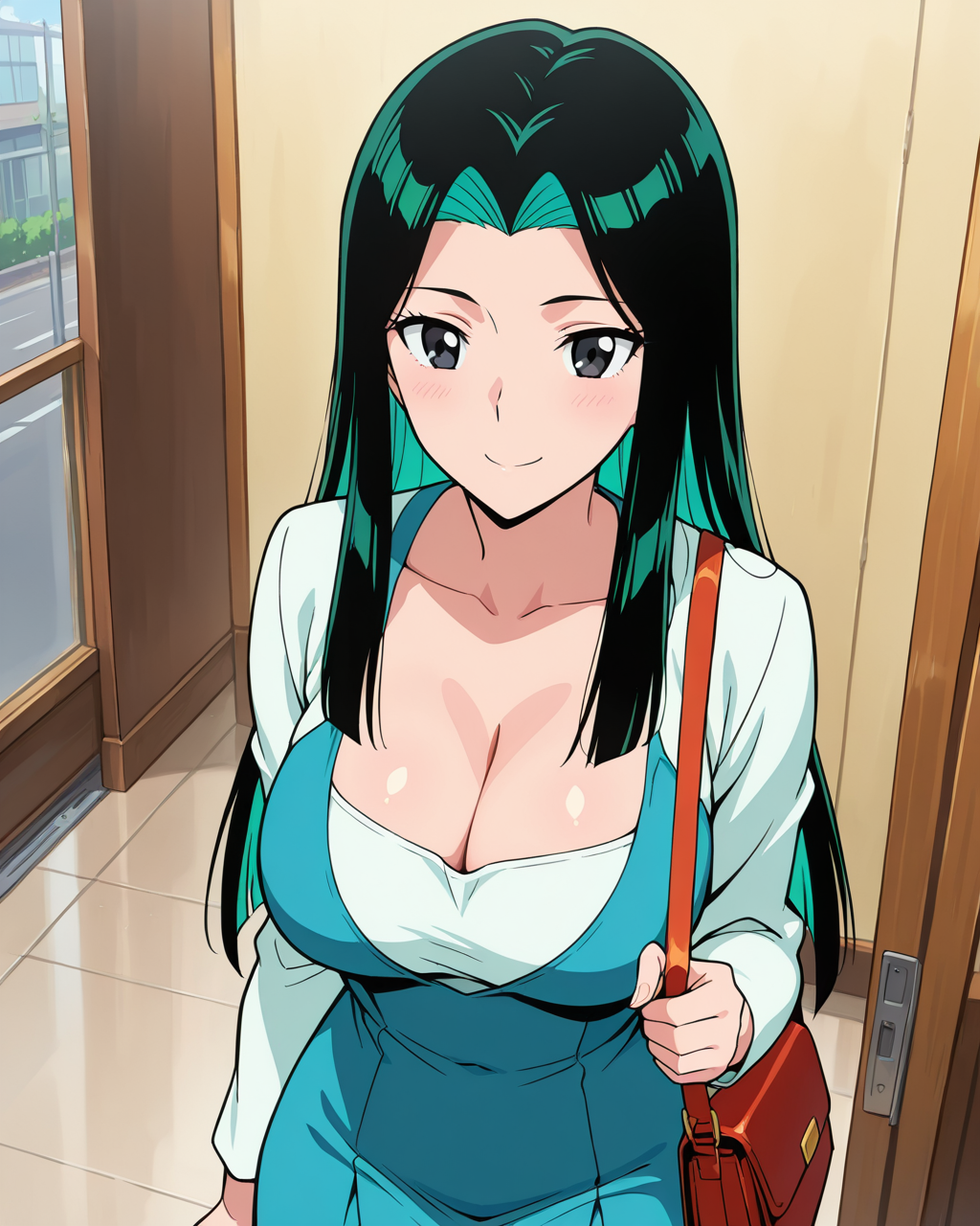 - Ritsuko Takahashi, Ritsuko, 1girl, solo, long hair, black hair, medium breasts, multicolored hair