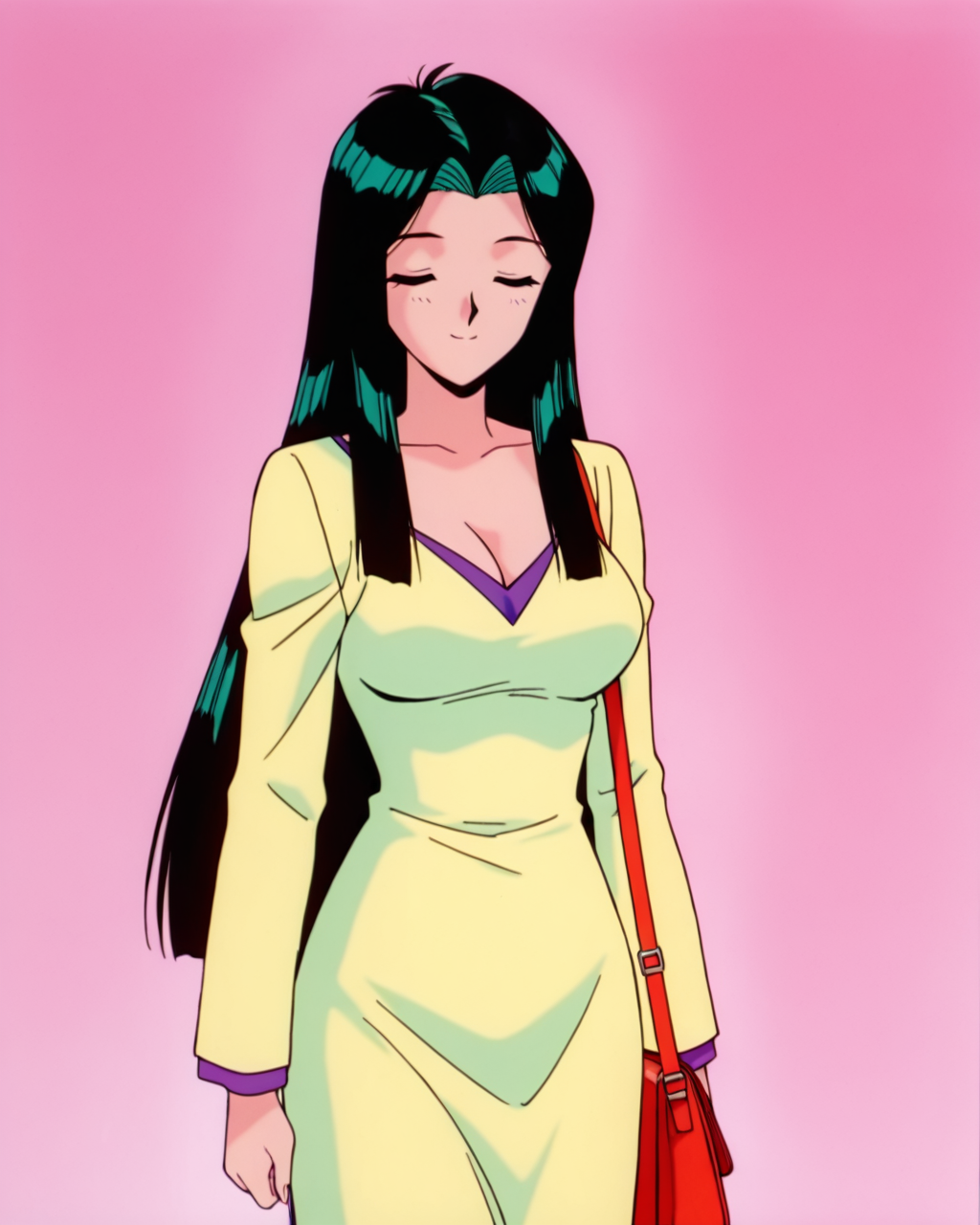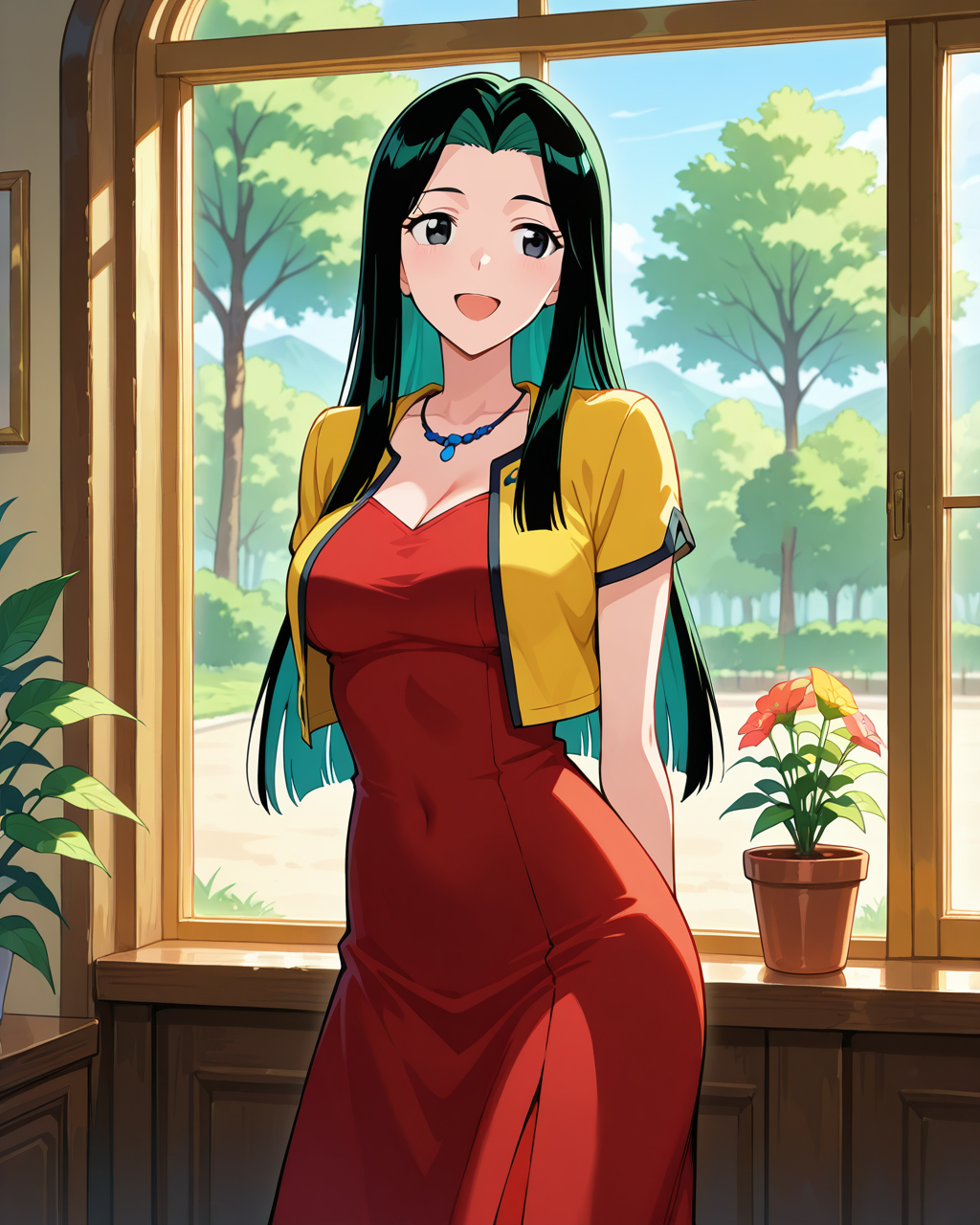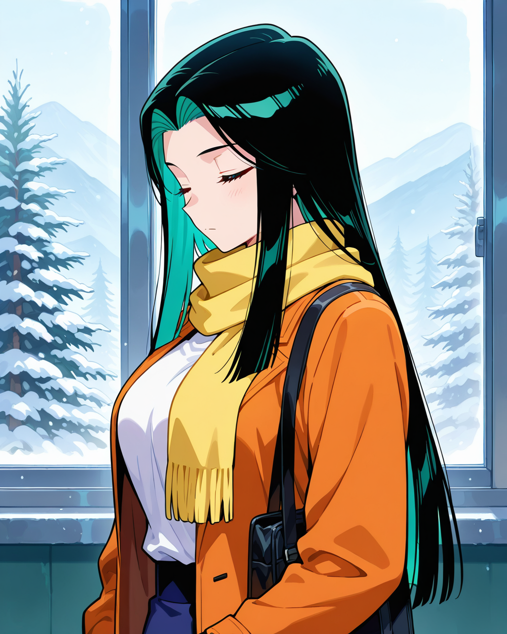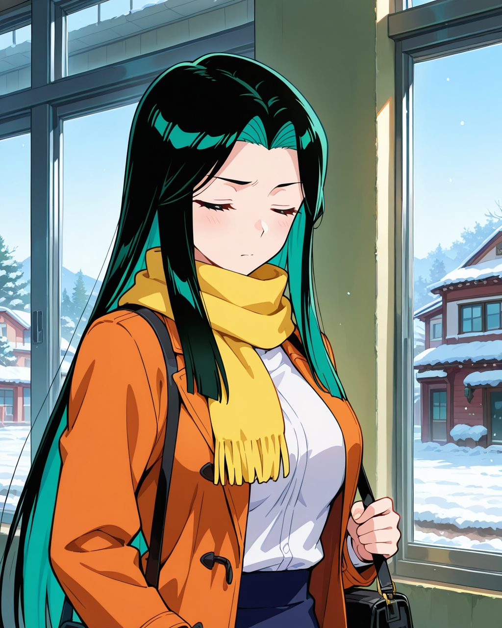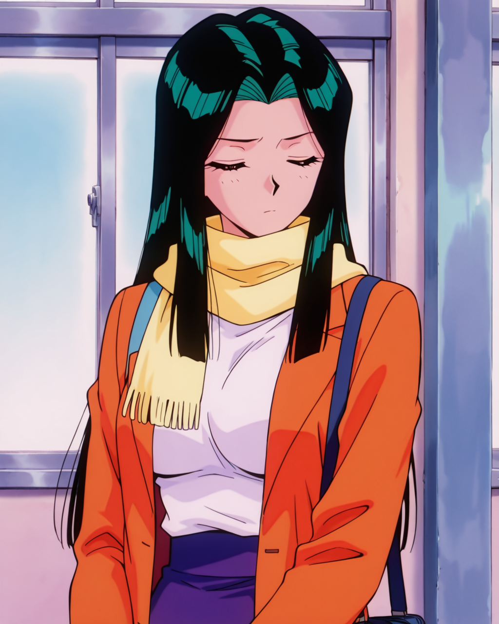 - Ritsuko Takahashi, Ritsuko, 1girl, solo, long hair, black hair, medium breasts, multicolored hair