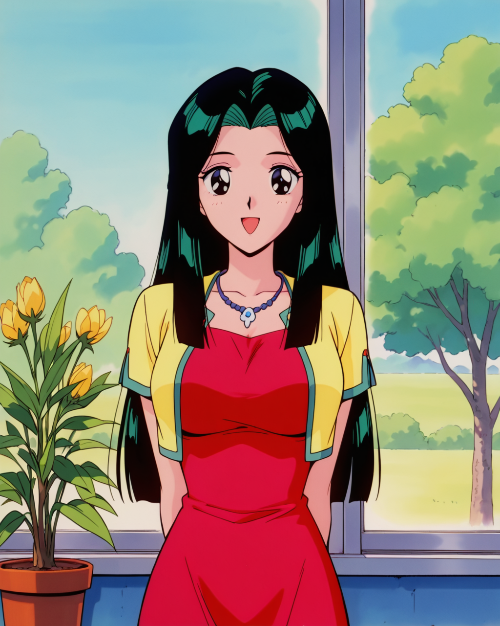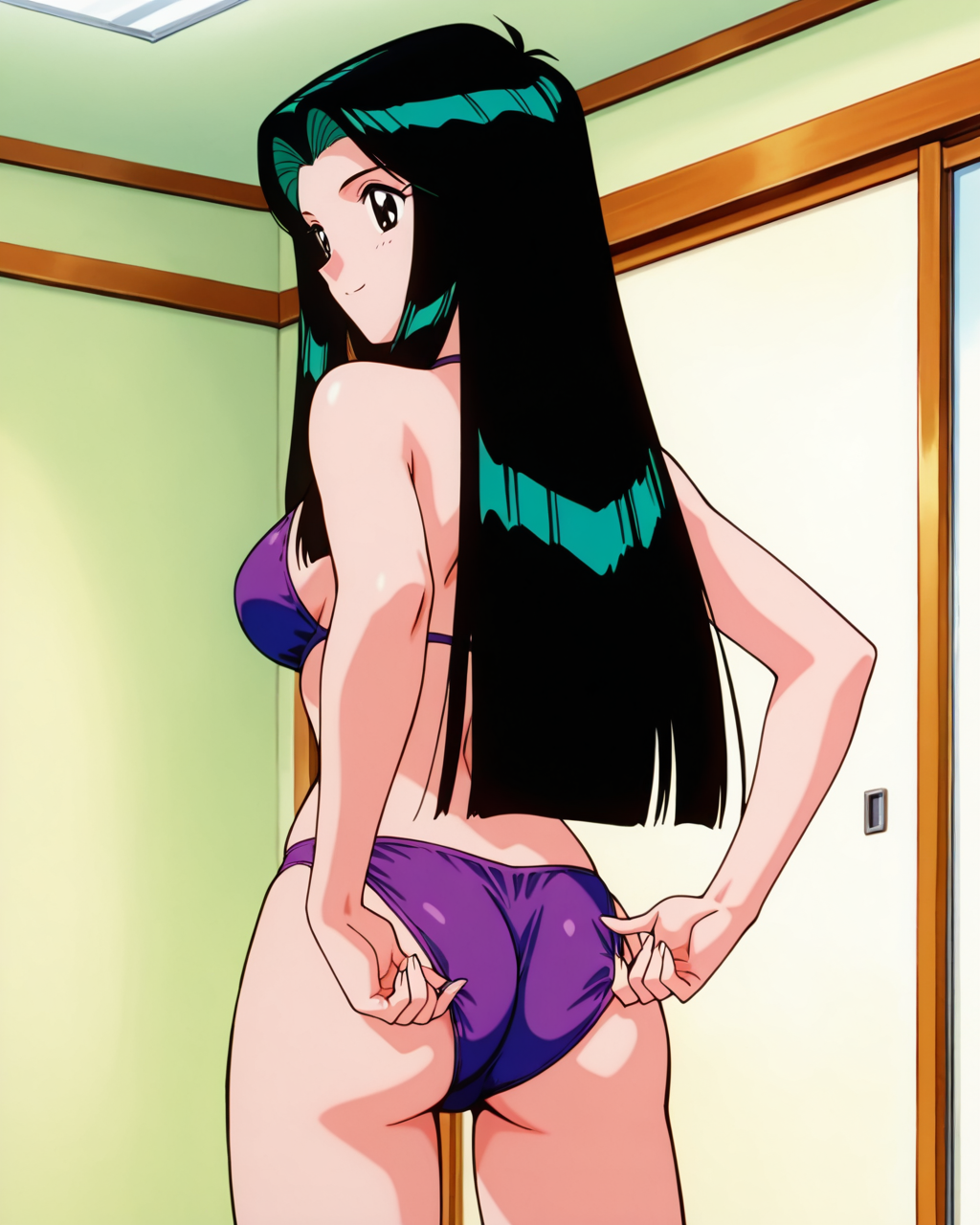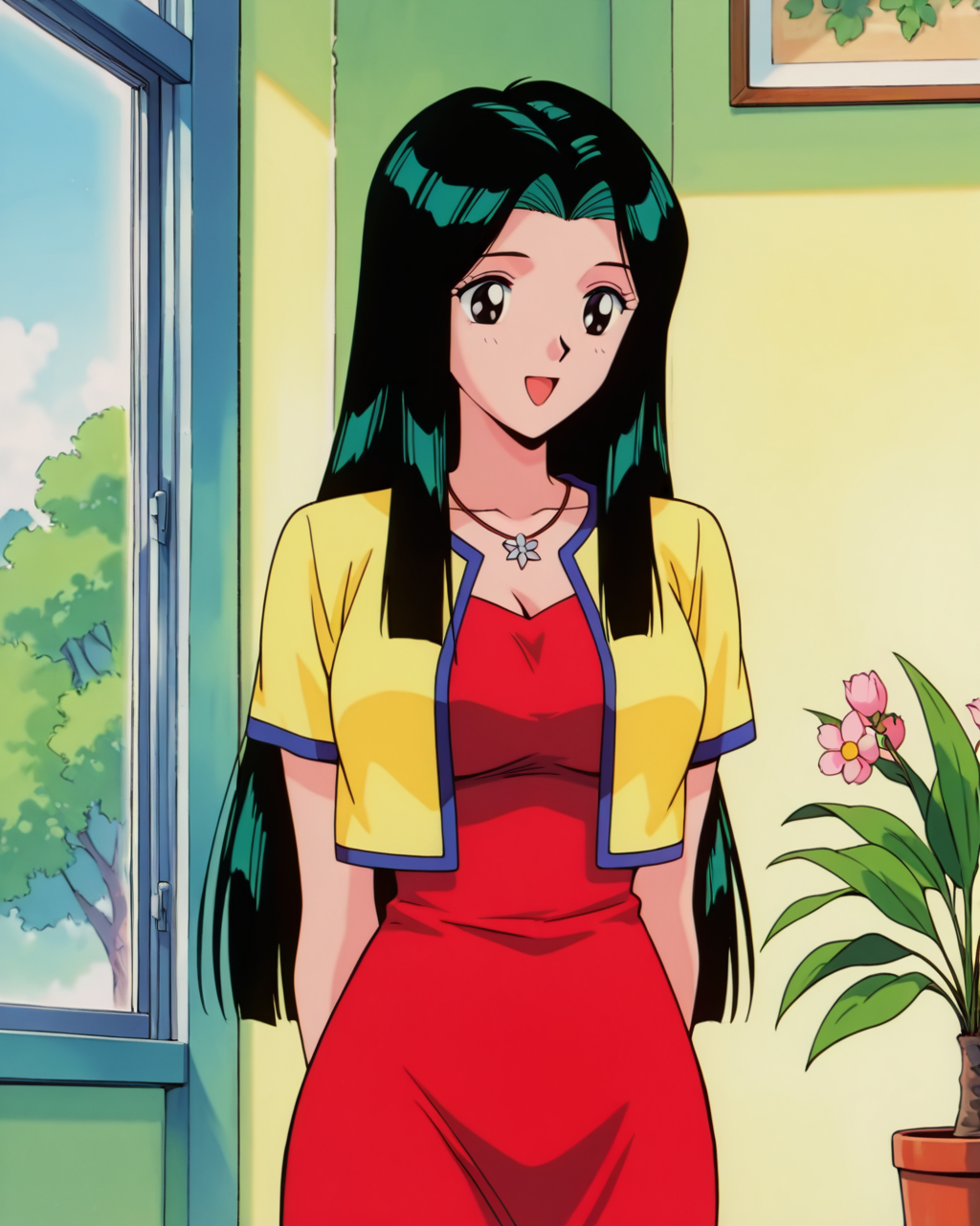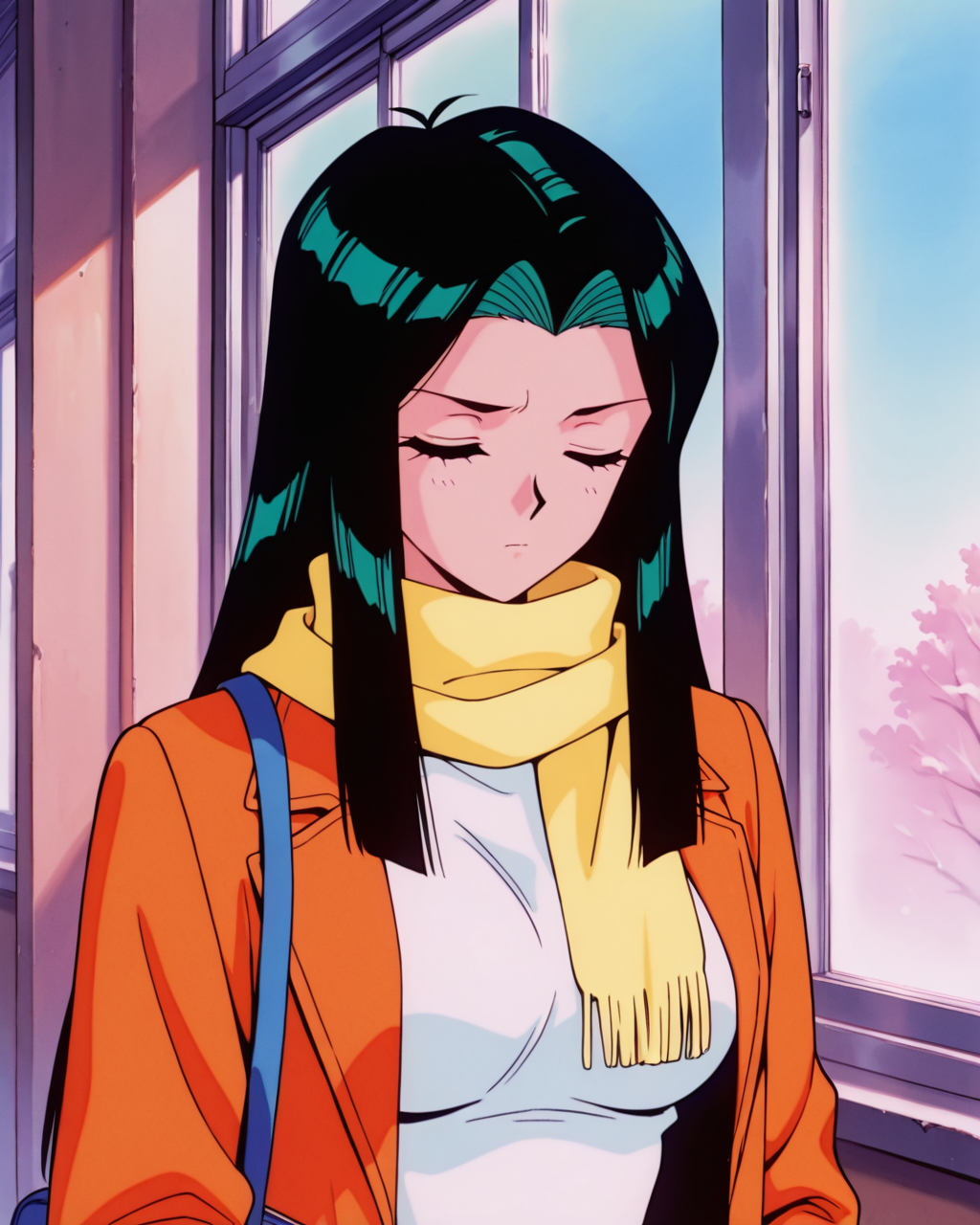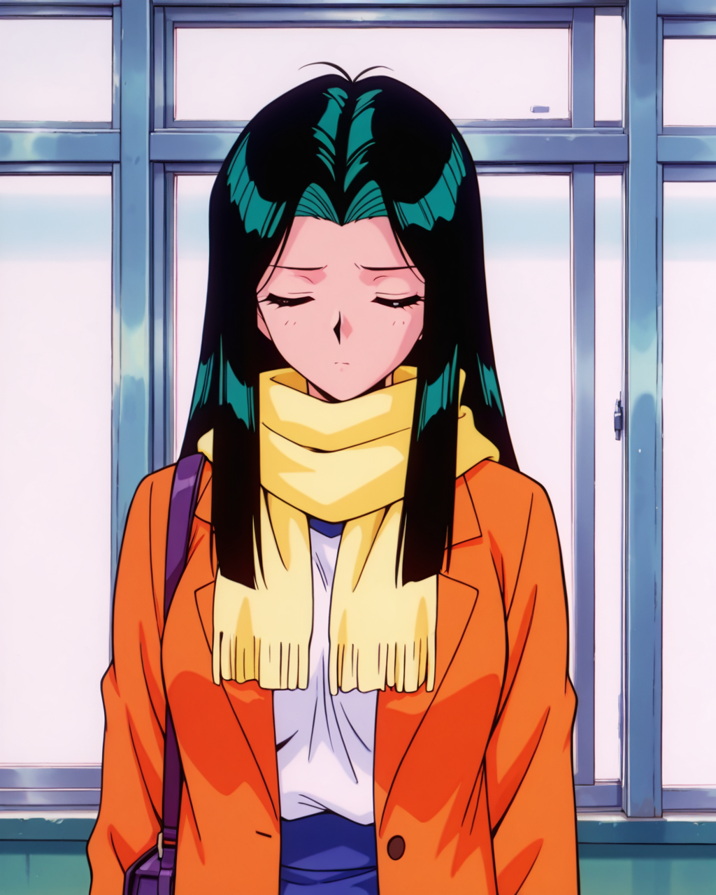 - Ritsuko Takahashi, Ritsuko, 1girl, solo, long hair, black hair, medium breasts, multicolored hair