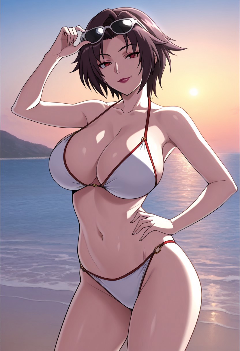 茶色の髪、ショートヘア、赤い目、化粧、リップスティック、
