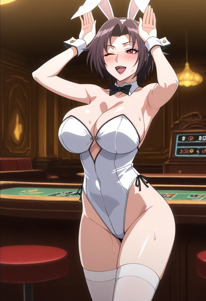 チャイナドレス、胸元、肘まである手袋、黒い太ももハイズ、ガーターベルト、タンガ、