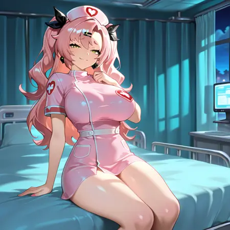 追加:病床、室内、点滴、モニター、診療所、カーテン
