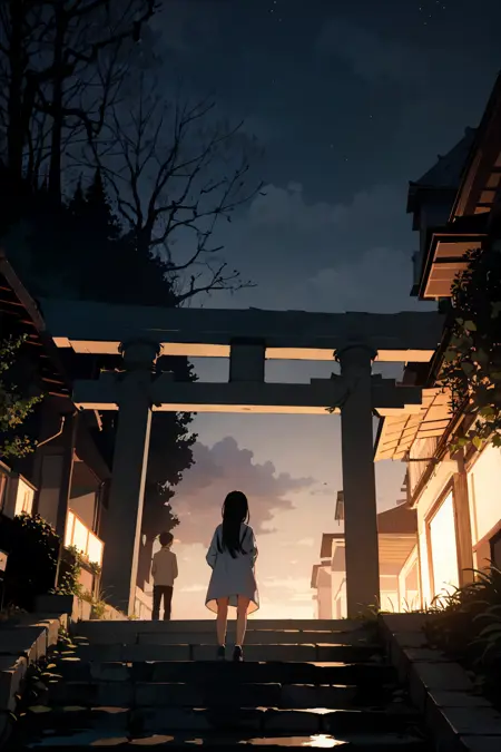 オプションのワード: 風景、屋外、自然、階段、注連縄、...