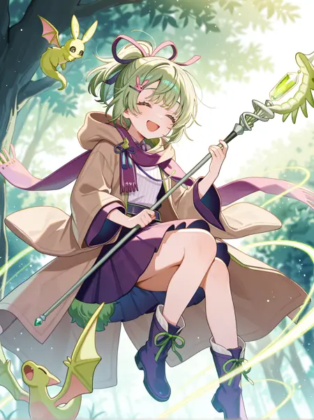 Tags (other):bat, mini dragon,stuffed rabbit,magic circle,holding staff,magic staff,offical style