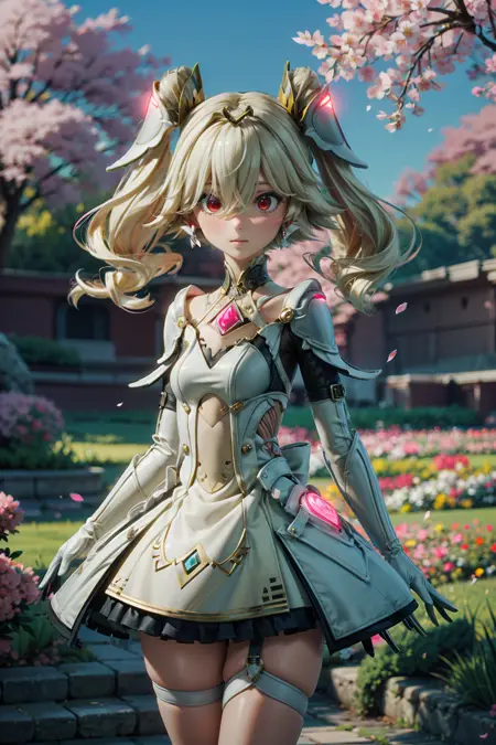 로라 정보에 다음 태그 사용: rubytoff, 하얀 머리, 머리 장식, 더블테일, 눈 사이의 머리카락, 빨간 눈, 앞머리, 장갑, 흰색 장갑, 흰색 드레스 등