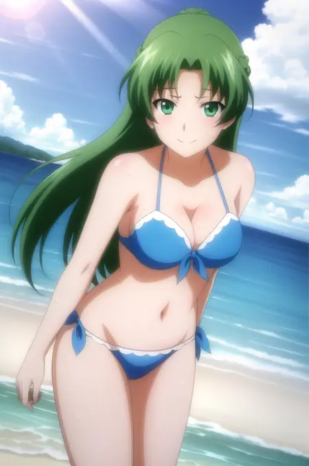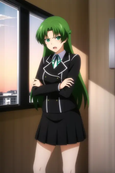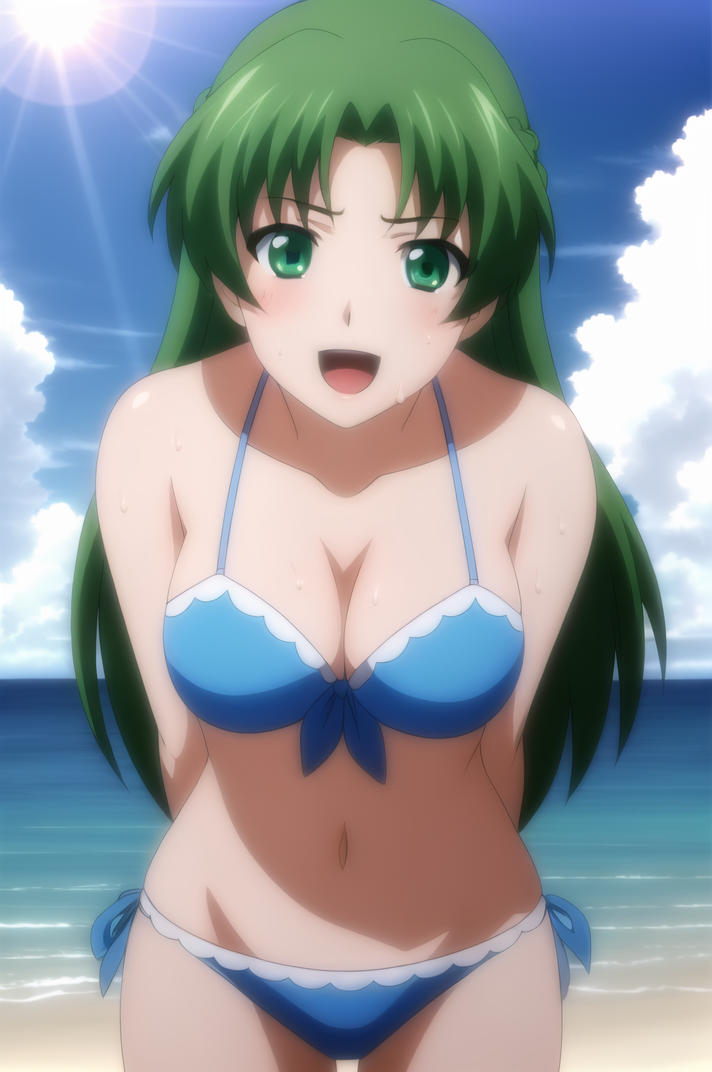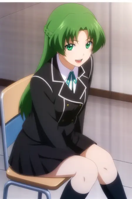 <lora:HarukaNanase-v1-06:0.7>, ChopioHarukaNanase, 긴 머리, 녹색 머리, 땋은 머리, 반쪽 올리기, 녹색 눈, (보는 시선:1.3),