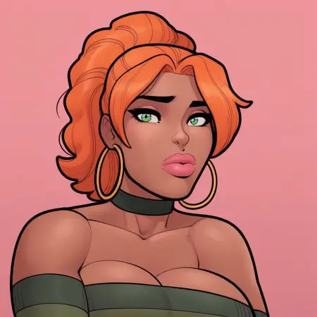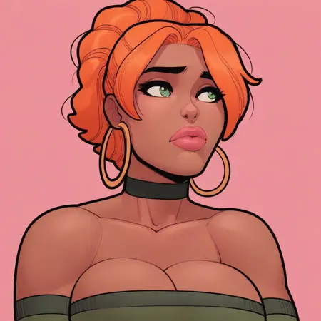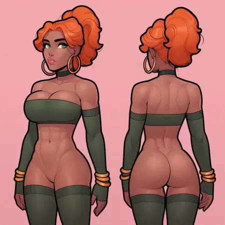 hoop earrings, cleavage, choker, thigh highs,
