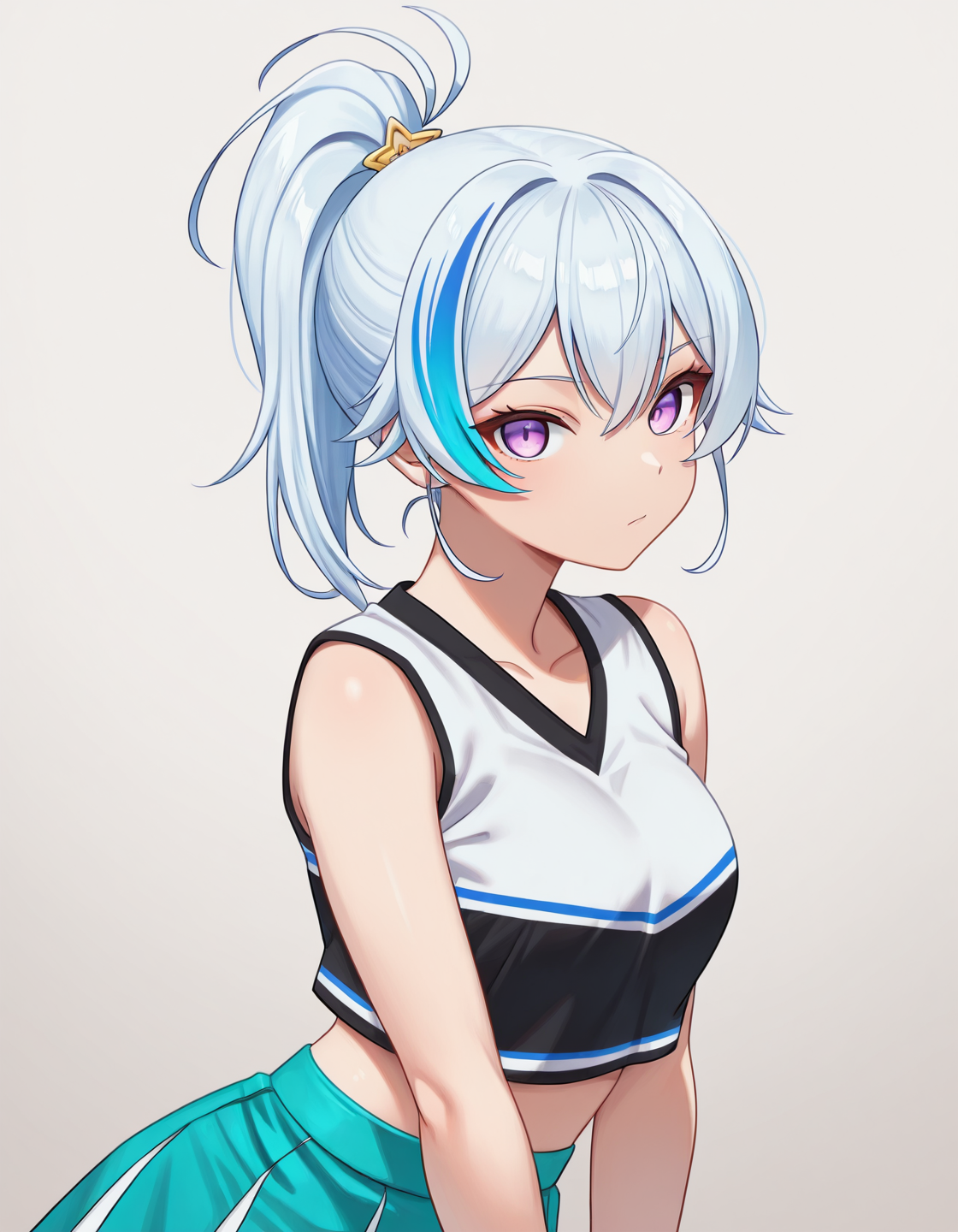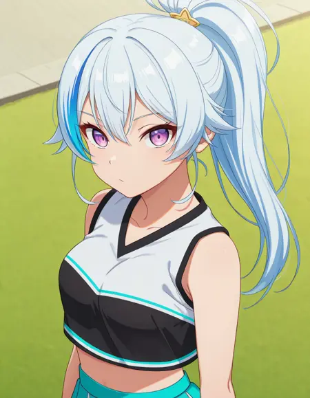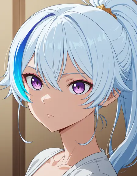 3phne1,blue hair, purple eyes, ponytail,streaked hair,white hair,long hair