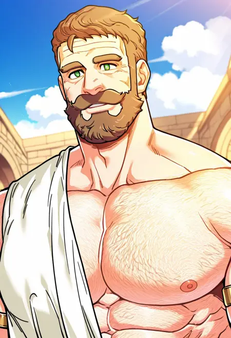 Leop0ldL,虚构角色,1个男孩,单独,仅男性,男性焦点, bara,老年男子,成熟男性,肌肉发达,面部毛发,胡须,胡子,白发,