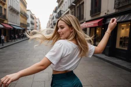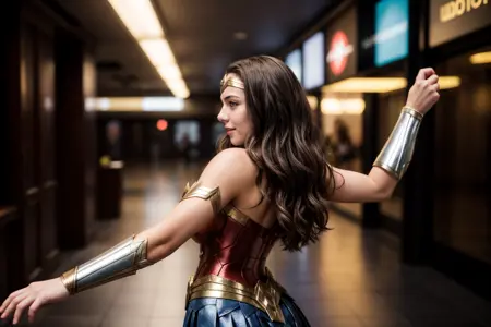 긍정적 프롬프트: 뒤에서, 오른팔을 뻗은 상태