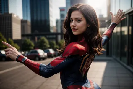 긍정적 프롬프트: 뒤에서, 오른팔을 뻗은 상태
