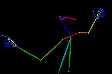 OpenPose 뼈 구조 및 프롬프트 정보가 포함된 예시 이미지.
