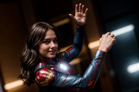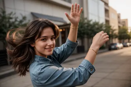Positive prompt: from behind, stretching right arm