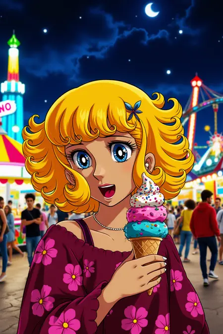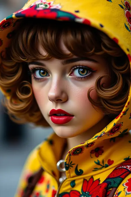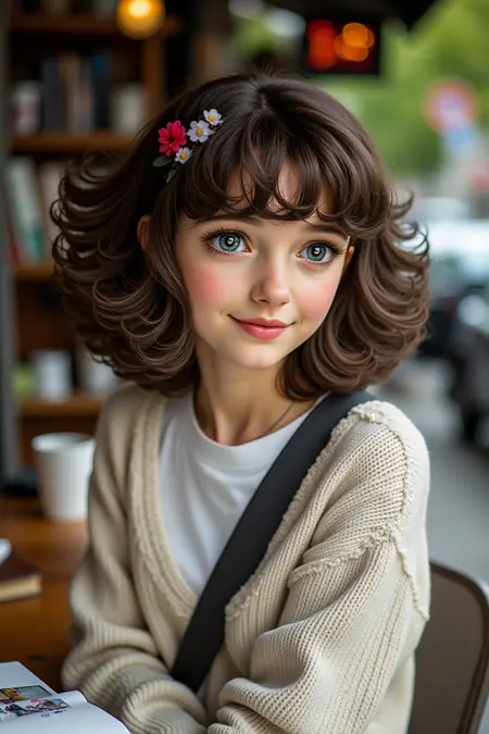 클래식한 외모의 헤어스타일과 헤어밴드는 고정되어 있으며, 머리색과 옷은 프롬프트를 통해 지정할 수 있습니다.