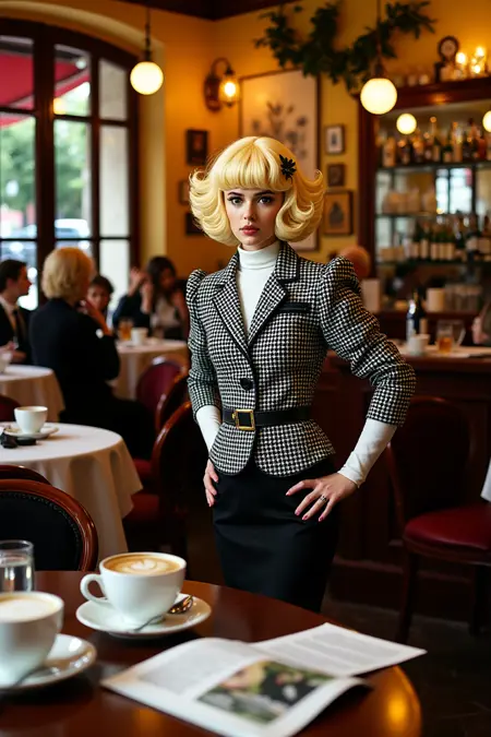 经典造型提示词包括:红白连衣裙、蓝色蝴蝶结、红色靴子等。