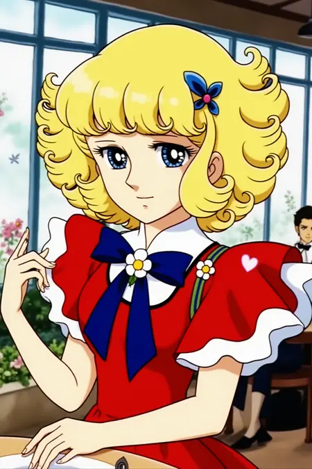 クラシックな外見のヘアスタイルとヘアバンドは固定されていますが、髪の色や服装はプロンプトで指定できます。