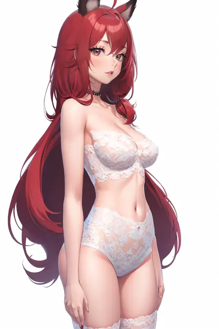 - 触发词(Trigger word): 1girl,solo,thighhighs,breasts,fishnets,navel,lingerie,underwear,fishnet thighhighs,lace,lace trim,