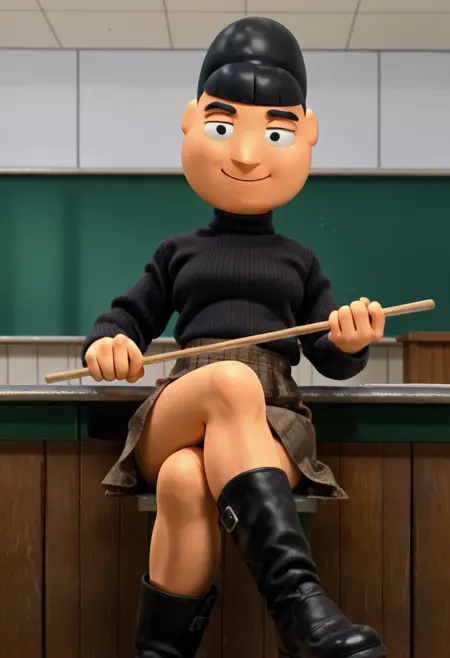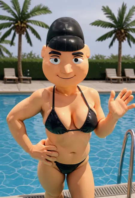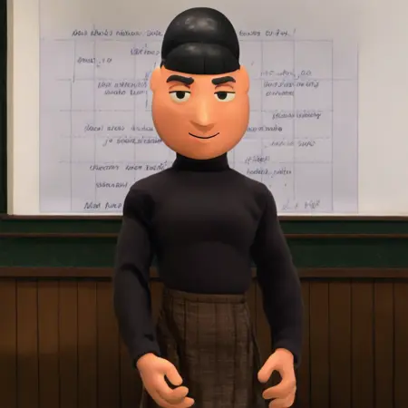 1girl, solo, AgnesMO, light skin, black eyes, black hair, high bun, blunt front bangs