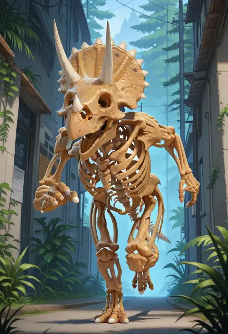 anthro, Triceratops, reptilian, three horns, skeleton, bones