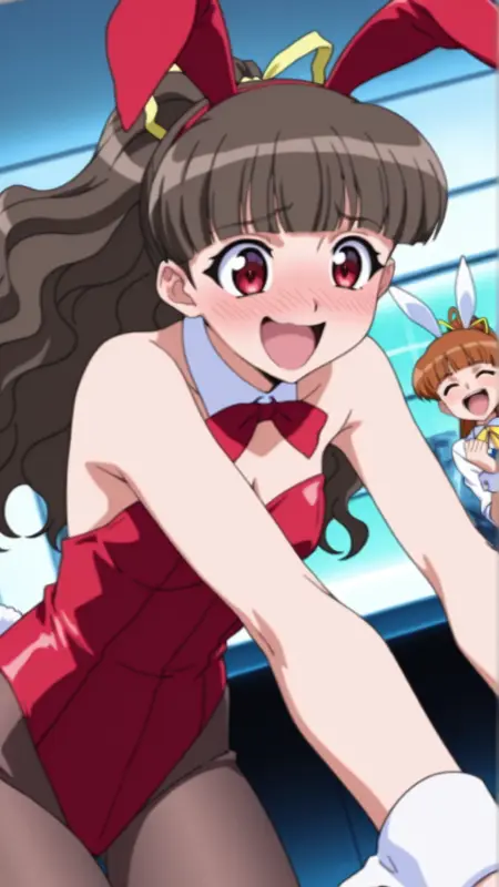 服装:蓝色校服,红色短裙,粉色蝴蝶结,