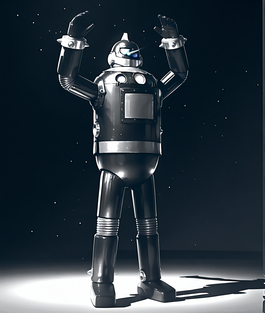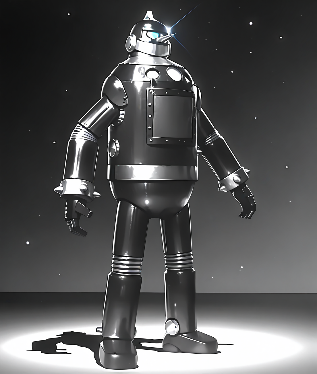 tetsujin2860b, no humans, robot,mecha, monochrome,long nose,long body,fat body,short legs,tokusatsu