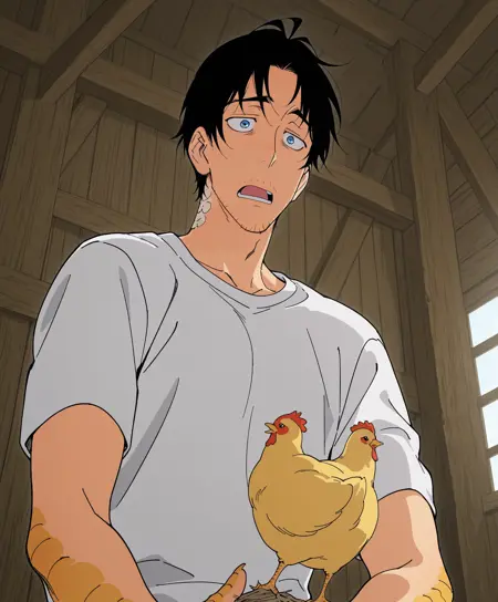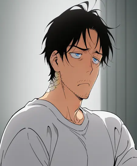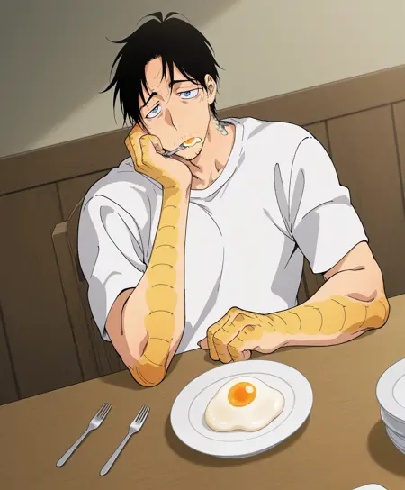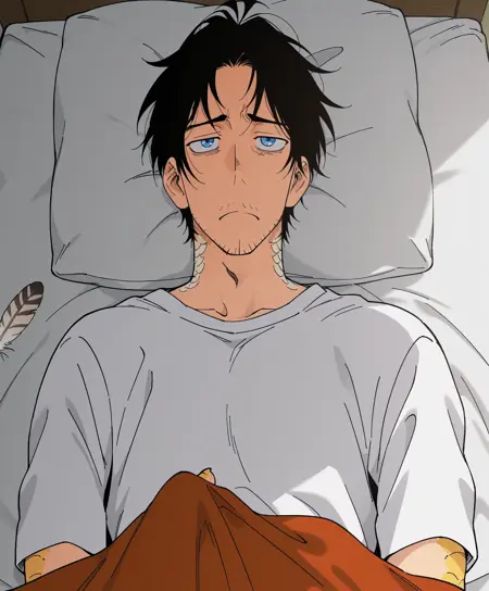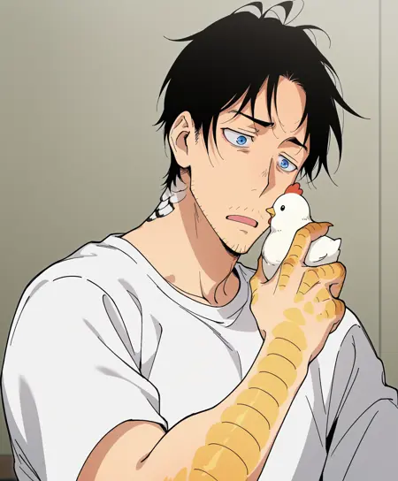 k,胡须,蓝眼睛,胡茬,白衬衫,羽毛,黄色鳞片,