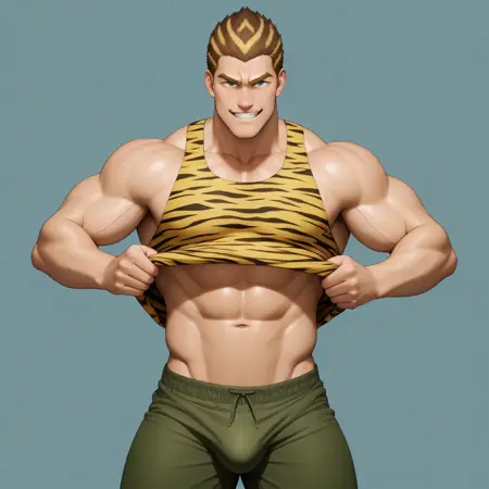 기본 외모: 탱크탑, 호랑이 무늬, 녹색 바지