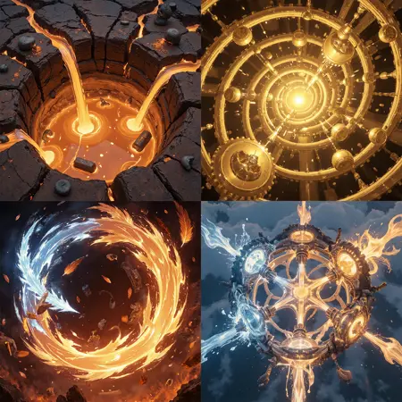 あとは、あなたの想像力を自由に広げてください。大規模言語モデルを使用してプロンプトワードを生成することをお勧めします。AIに次のように言ってください:「あなたはプロンプトワードのマスターです。私の簡潔な説明に基づいて、ComfyUIと互換性のあるFLUXモデル用のスキルアイコンプロンプトワードを生成してください。私のスタイルは、Okaの統一された魔法的リアリズムです。」そうすれば、以下のような優れたプロンプトワードが得られます:エメラルド色の風のトンネルを駆け抜けるシルエット、古代の風の文字で構成された運動線、空力的なパターンに整列した羽の粒子、Nier Automata風のUIエフェクト /** モノクロの短剣アイコンが烏の群れに溶け込む、端部に紫色/黒のノイズ歪み、警告ルーンの形をした淡い血のしぶき、League of Legendsのダークな美学で。AIにあなたの考えを伝えるだけで十分です。これは十分に実現可能です。