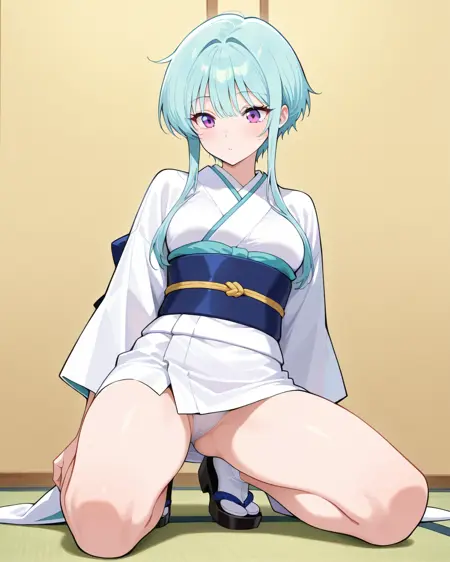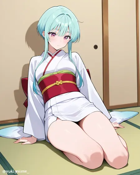 Yukime, yuki, 1girl, solo, short hair, aqua hair, short hair with long locks, solo, breasts