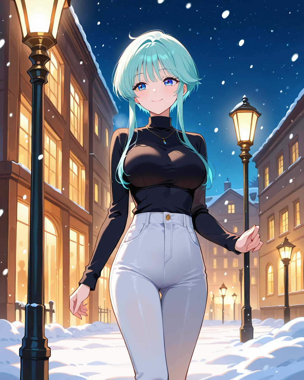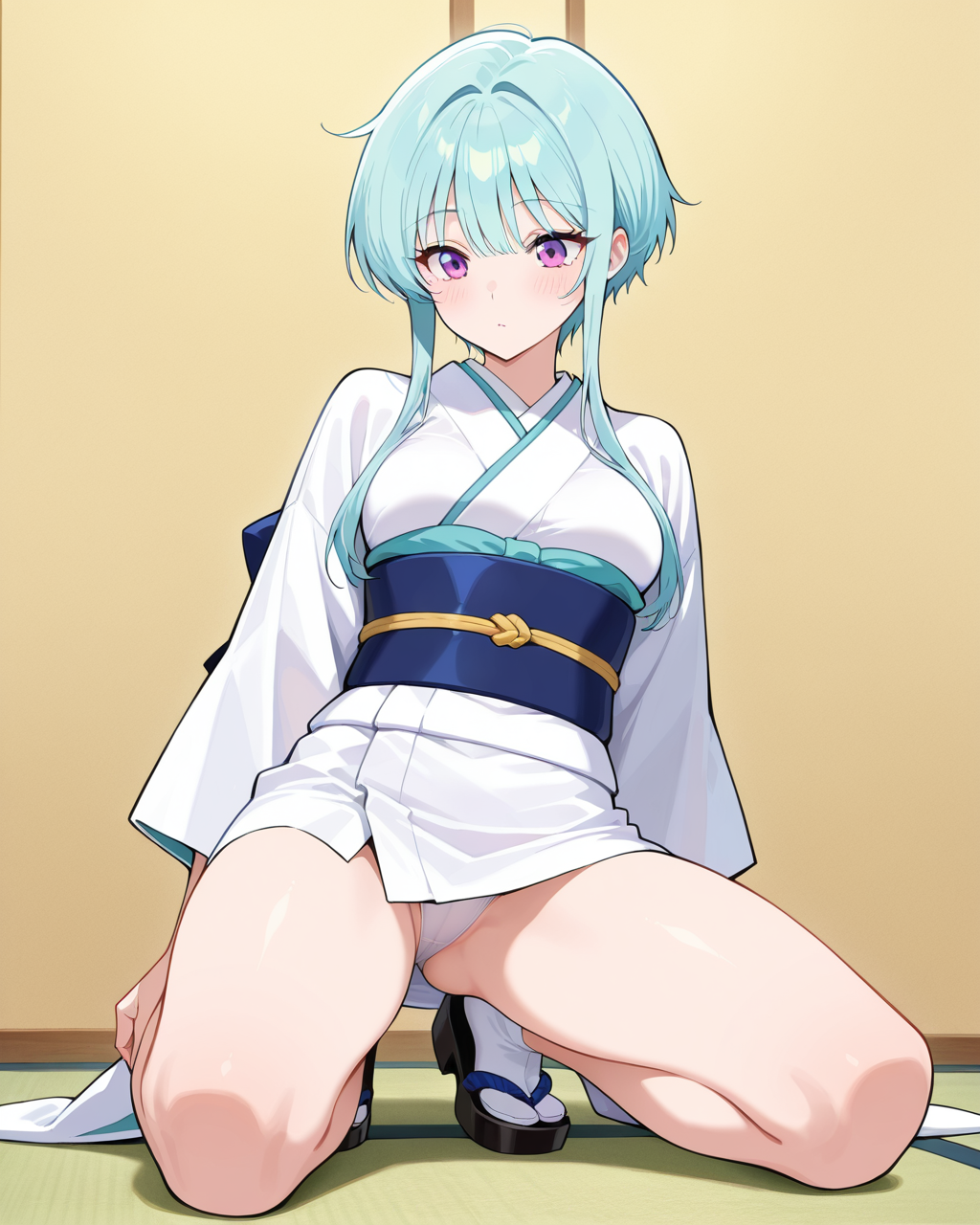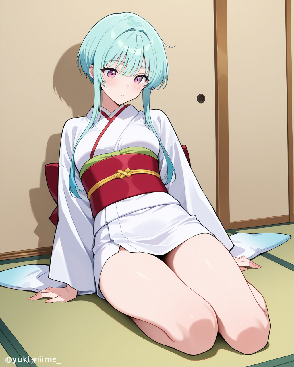 • Yukime, yuki, 1girl, solo, short hair, aqua hair, short hair with long locks, solo, breasts