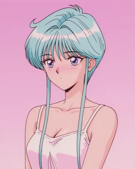 Yukime, yuki, pants, night, snow, black turtleneck, short hair, aqua hair, 1girl, solo, 1990s \(style\), retro artstyle