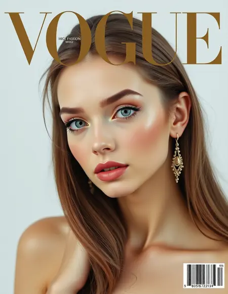 外貌: 二十多岁,冰蓝色眼睛,中长棕色头发(柔和波浪),中性/浅色皮肤,洁净/光泽肌肤,淡妆,对称五官,平静自信的表情。