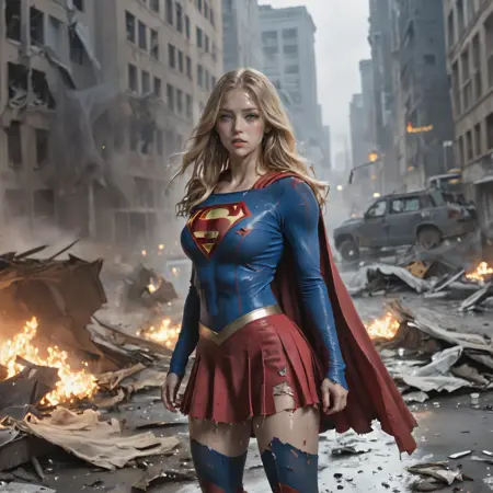 example prompt: mvsupergirl, blue long sleeves, red pleated skirt, pantyhose, knee boots
