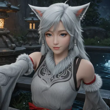 yinyue1, 1girl, solo, animal ears, cat ears, wolf ears, bare shoulders, blue eyes, green eyes, detached sleeves, ear piercing, earrings, heterochromia, jewelry, white hair, long hair, wide sleeves,