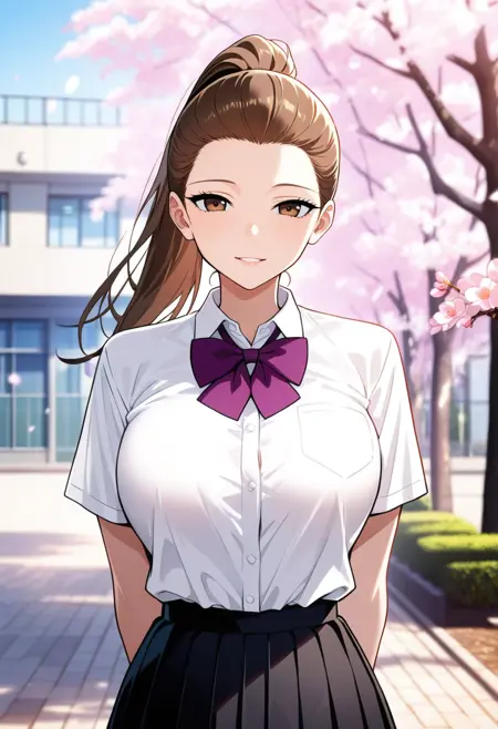갈색 눈, 갈색 머리, 머리를 묶음, 긴 머리, 포니테일