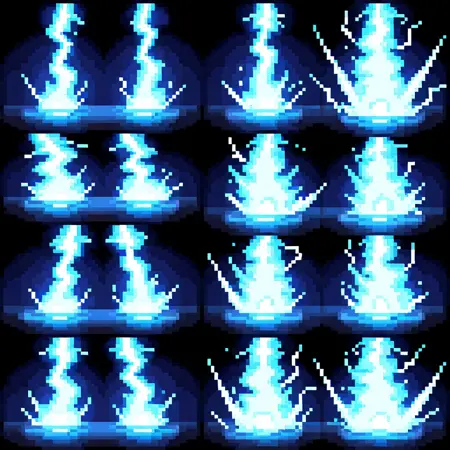 本模型包含多种动态特效,如火球、魔法圈、毒云、火花爆发、水花、冰刺、闪电等——所有特效均设计在黑色背景上,便于提取并集成到游戏中。